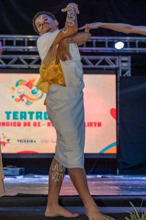 A programação teatral ocupou parte central da noite, com encenações de Zero Herói, O Mágico de Oz e Romeu e Julieta, que mantiveram o público atento durante as apresentações.