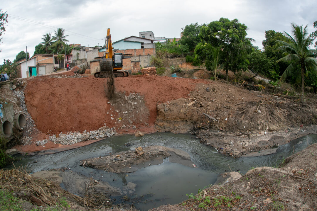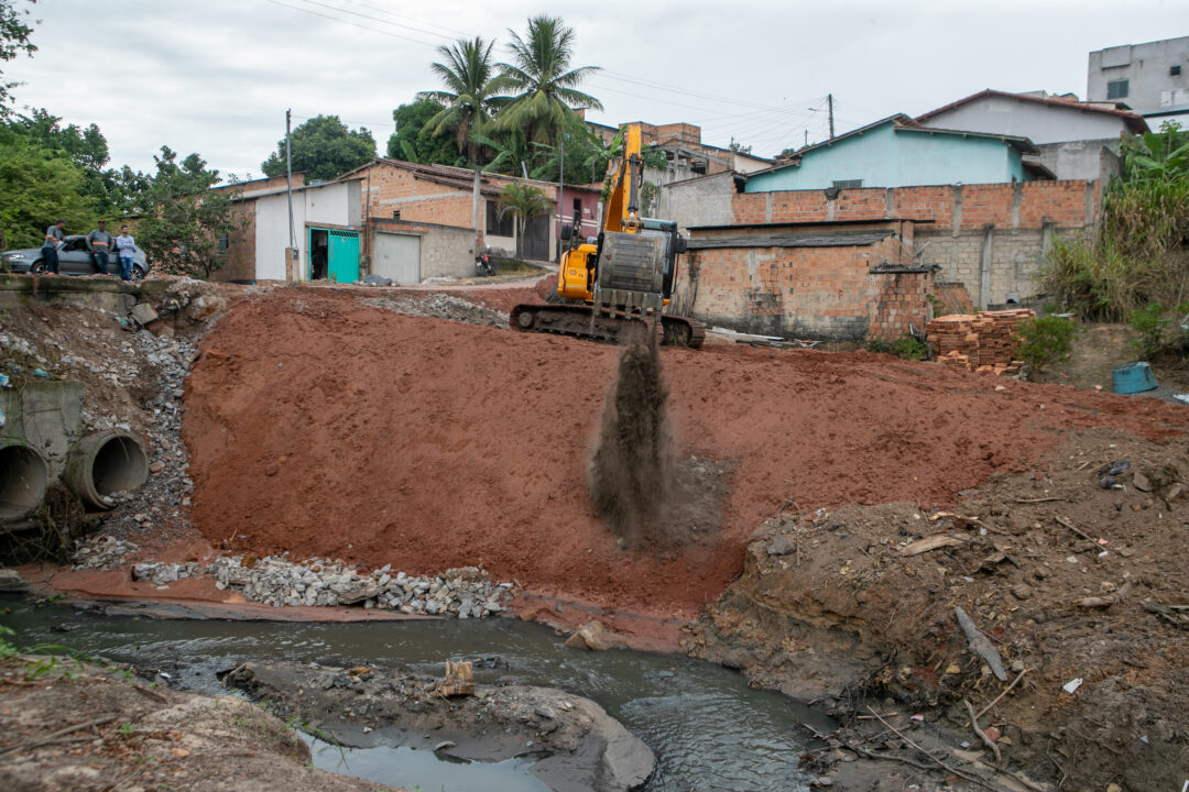 Durante a vistoria técnica, foram identificados indícios de deslizamento nos taludes de jusante, lado que corresponde à saída da macrodrenagem, localizada à esquerda de quem trafega na direção do bairro São Lourenço para o bairro Tancredo Neves. Diante disso, as equipes deram início à recomposição do aterro no trecho afetado.
