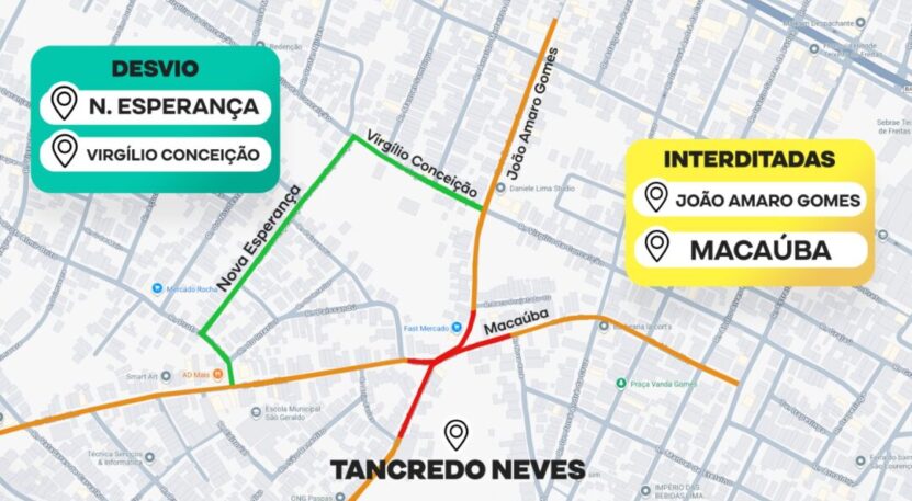 Prefeitura informa interdição das Ruas João Amaro Gomes e Macaúba