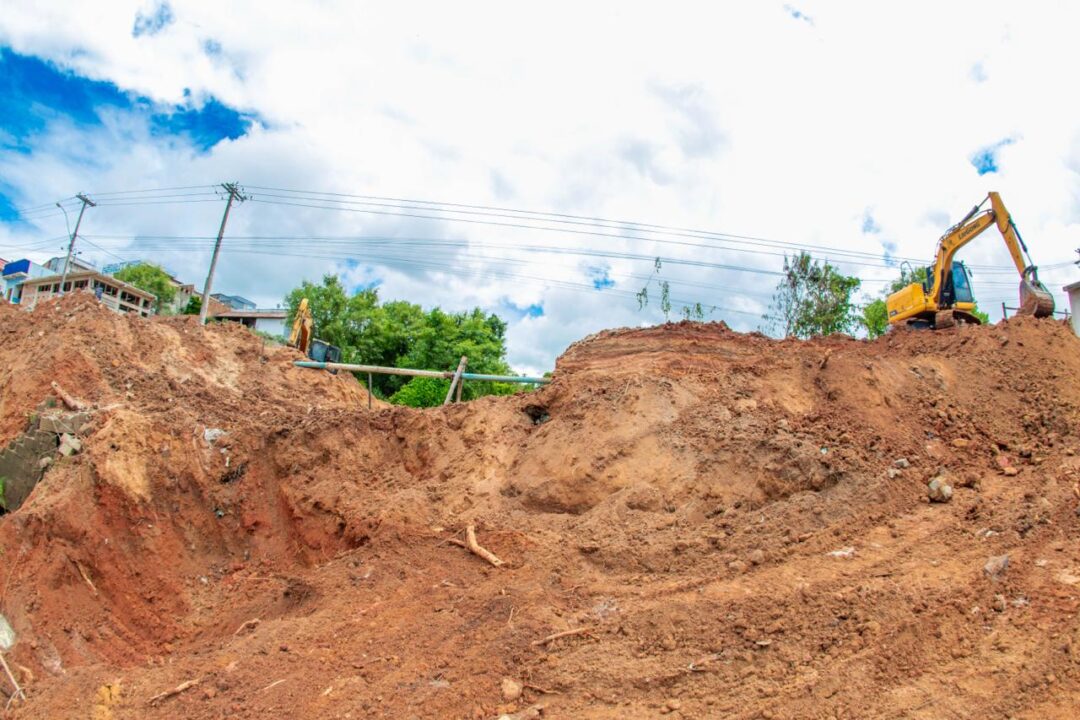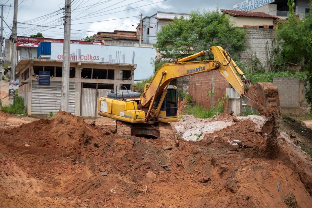 A intervenção começou com o preparo do solo, etapa necessária para receber as galerias pré-moldadas que serão instaladas na área. Paralelamente, também foi realizada a limpeza do córrego existente no local, permitindo melhores condições para o escoamento da água.